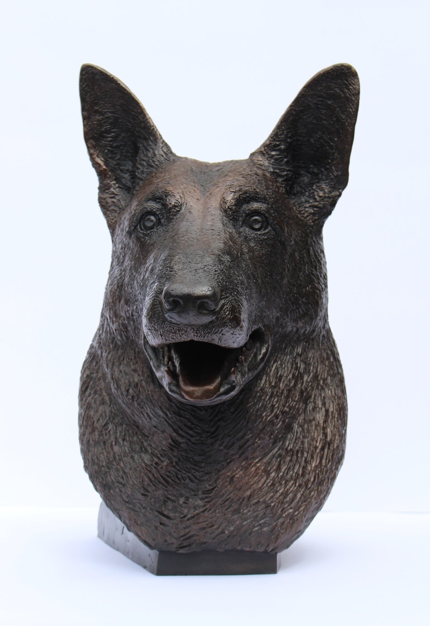 This 2/3rds life size bronze portrait was sculpted from photographs of a much-loved family pet.