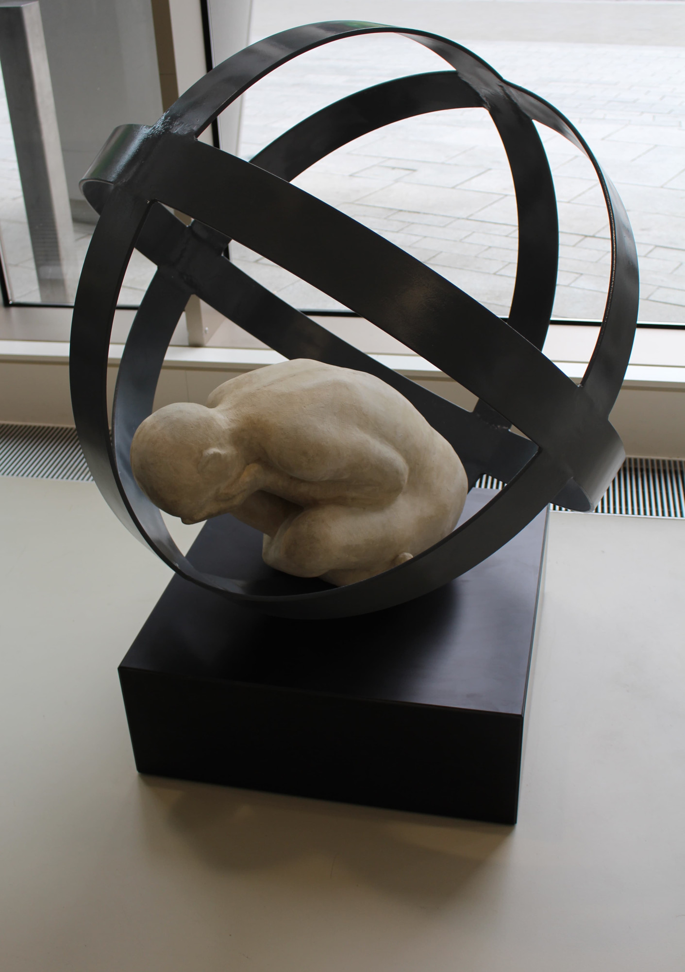 Mentis represents the struggle that we all experience at some point, in some way, one that is often extremely isolating. The open structure of the sculpture signifies that help and support can be reached, no matter how difficult things may seem.