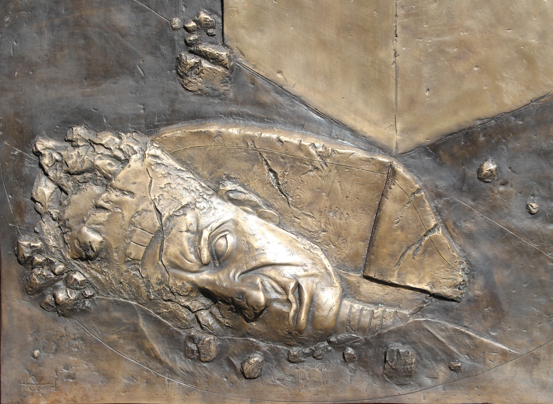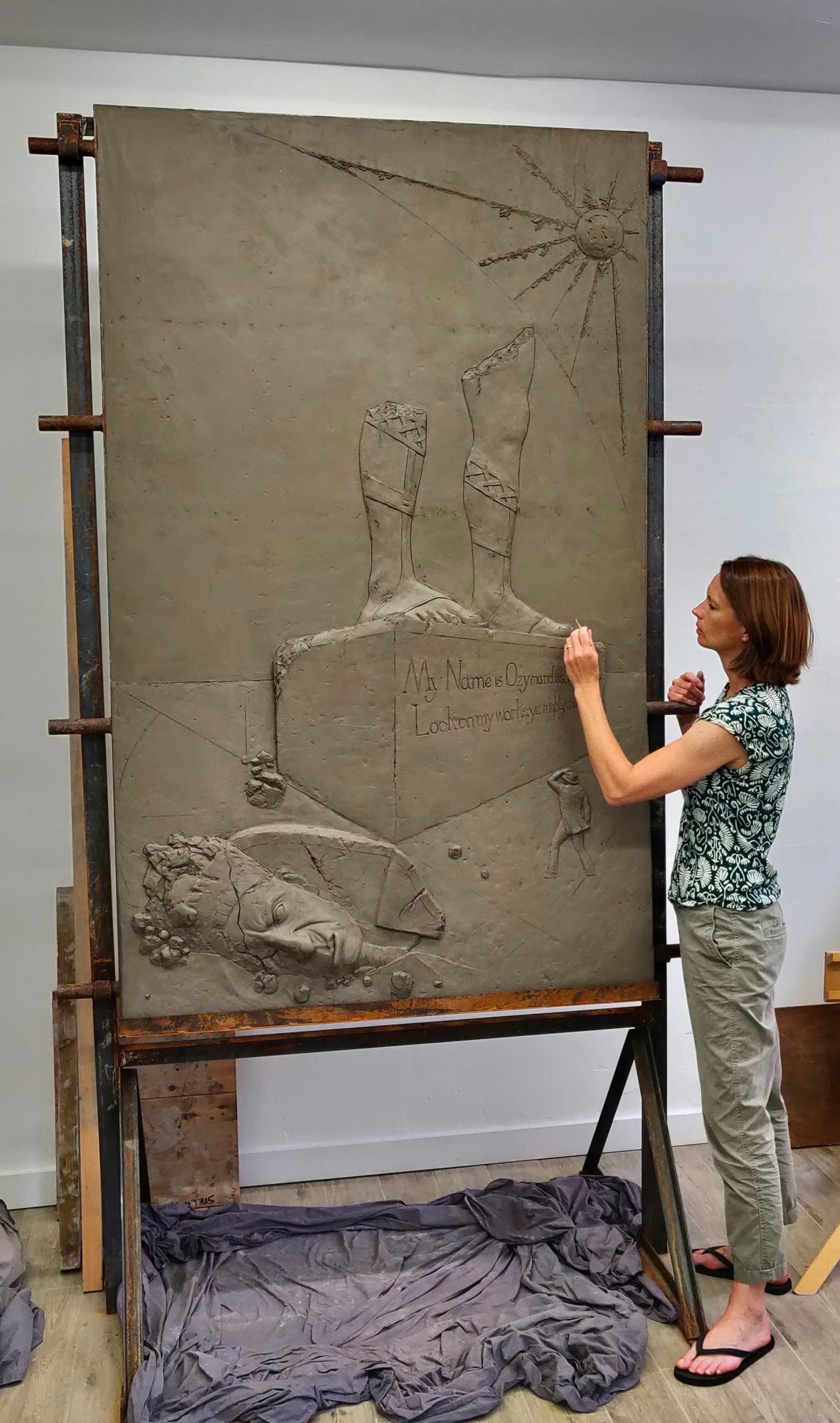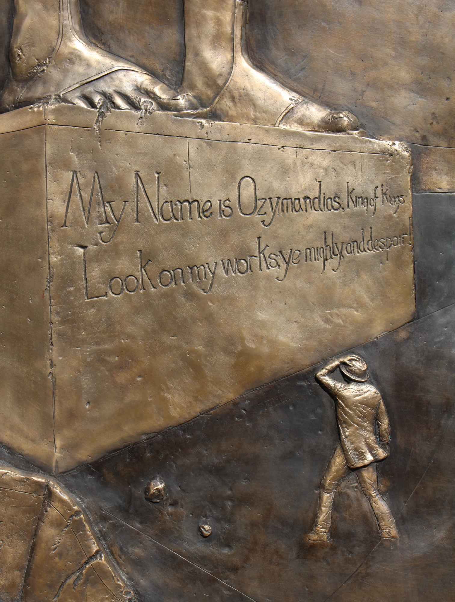 A 2m tall by 1.2m wide bronze relief panel depicting the poem ‘Ozymandias’ by Percy Bysshe Shelley.