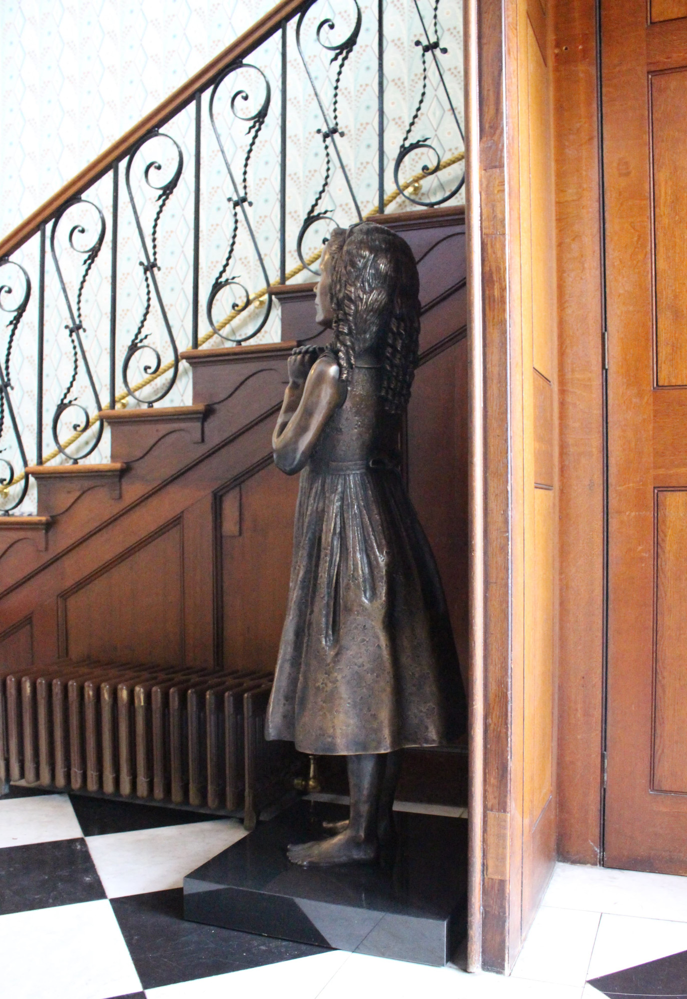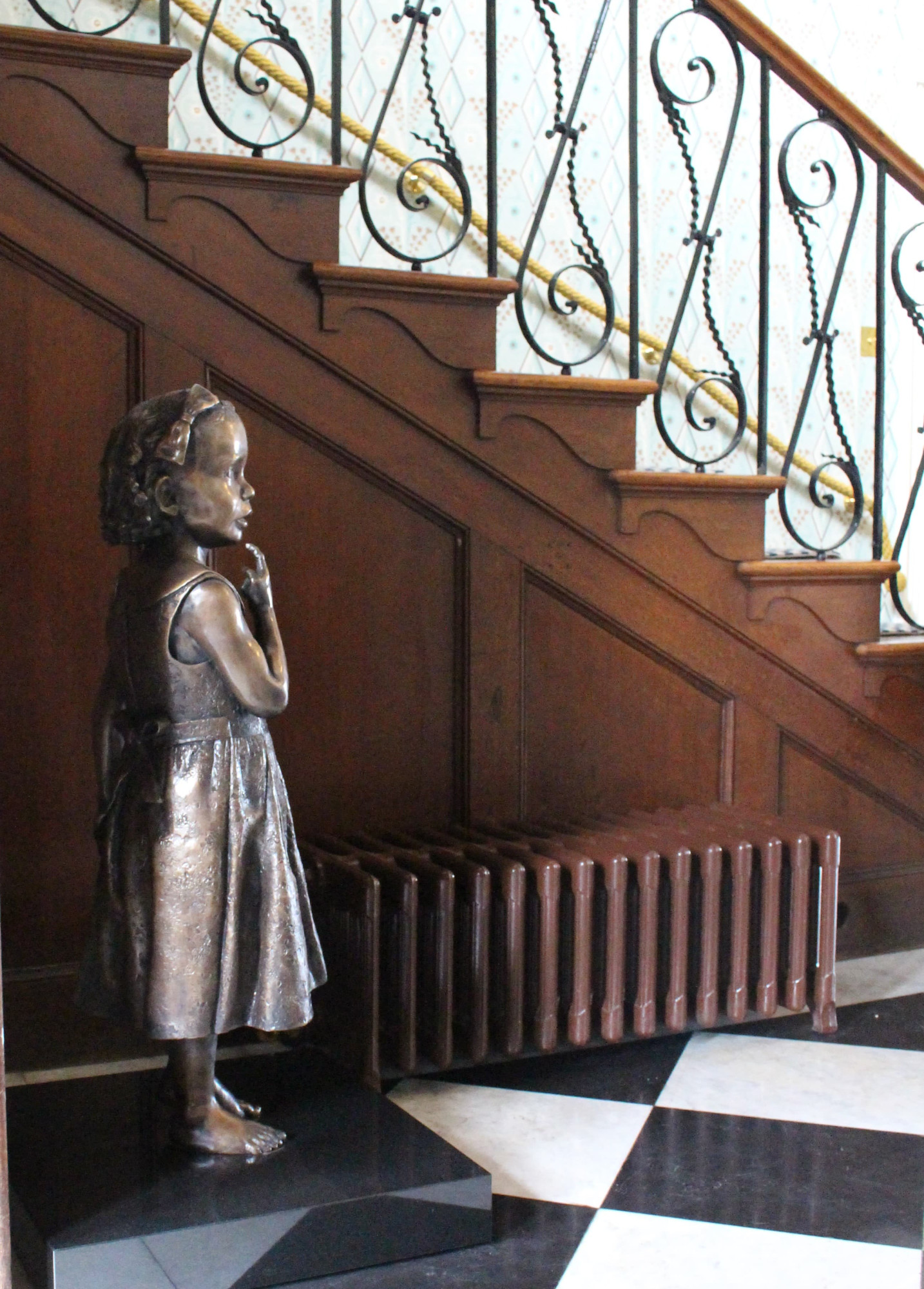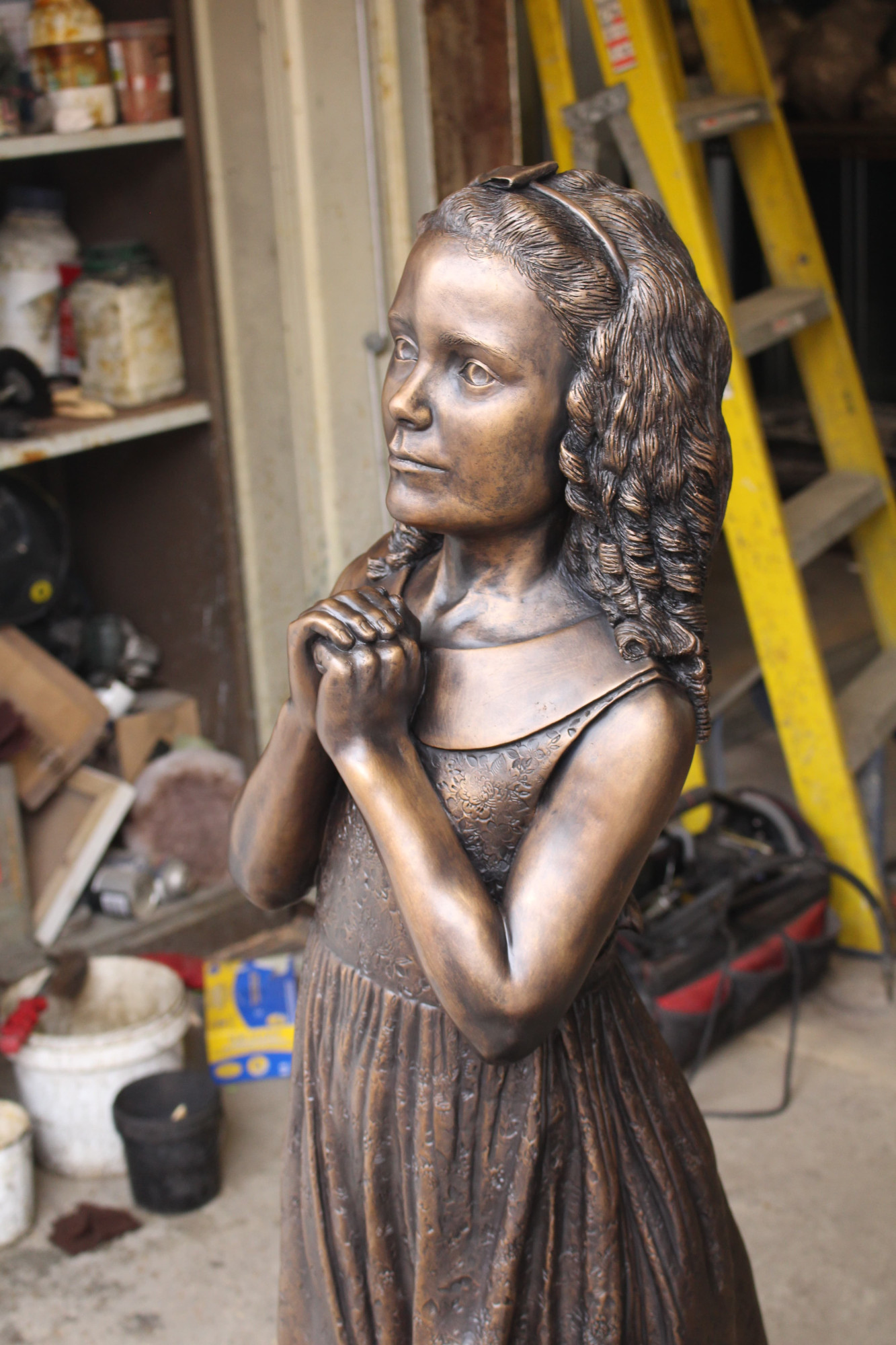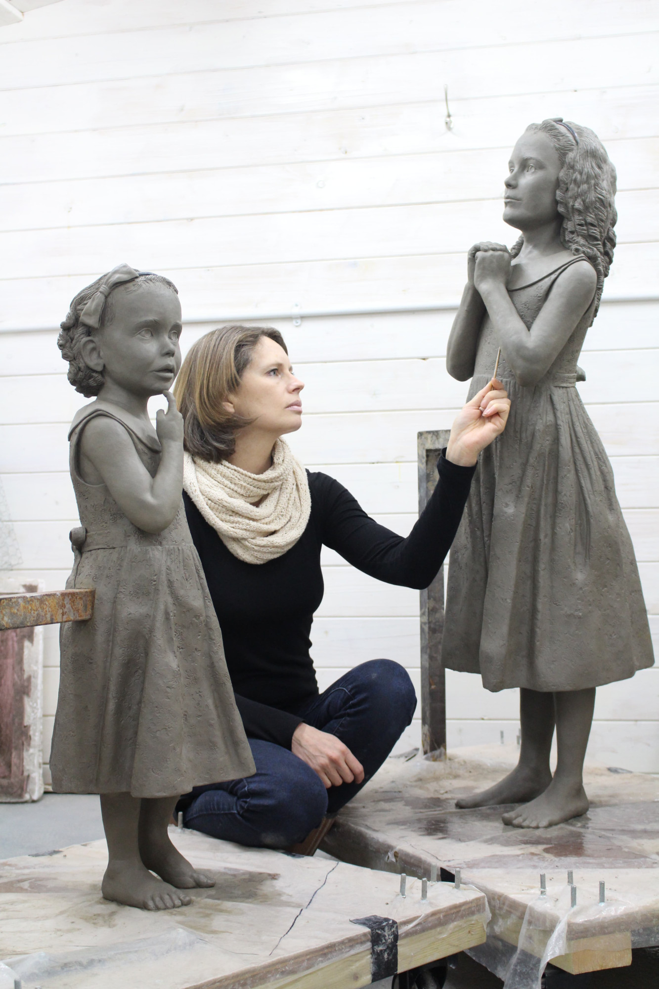 These two life size sculptures of two sisters were commissioned by the girls' family. The finished bronze sculptures were mounted on black granite plinths and show them wearing their summer dresses and characteristic headbands.